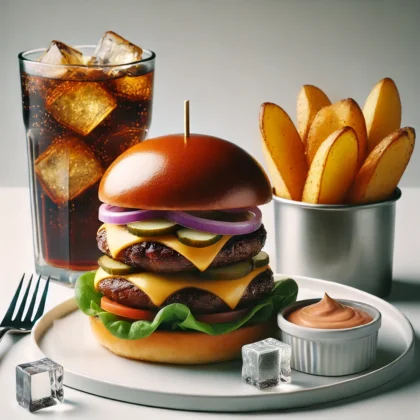 mit Pommes + Dip + Softgetränk 0,33l
