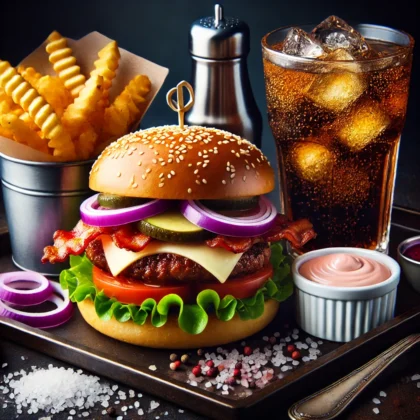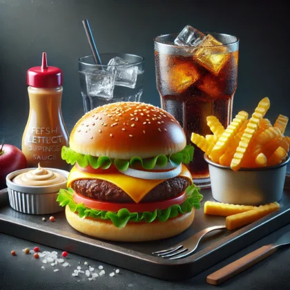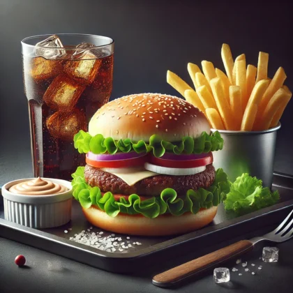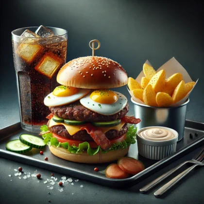 Chicken Nuggets (6 Stück) + Onion Rings (6 Stück) + Pommes + 2 Dips + Softgetränk 0,33l